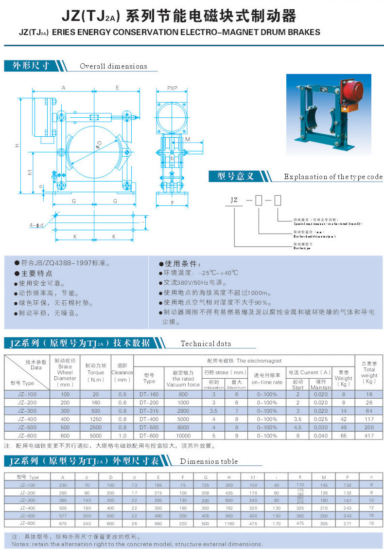 JZ(TJ2A)電磁塊式制動器系列