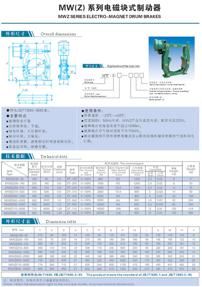 MW電磁塊式制動器系列