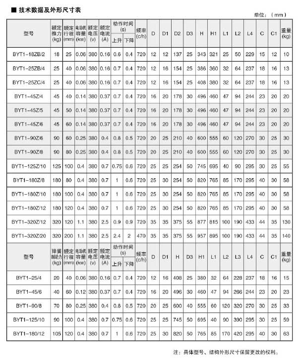 BYT1電力液壓推動器